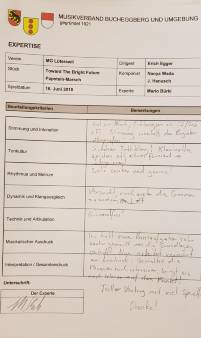 Wir spielten am Samstagnachmittag in der MZH Messen unser Stück "Toward the Bright Future" und danach den "Papstein-Marsch". Der Experte Mario Bürki hatte nicht sehr viel zu bemängeln beim Selbstwahlstück. Und auch wir fanden, dass wir es wahrscheinlich nicht viel besser spielen könnten. Der Marsch hingegen... der hat auch schon besser geklungen.