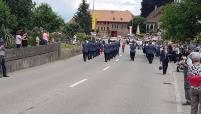Am Sonntag ging's dann schon um 09.00 Uhr los. Es wurde empfangen, geapérölet, geschwatzt und geschwitzt. Bis dann um 10.15 Uhr die Massen sich auf den Sportplatz bewegten, um gemeinsam "Crans Montana" und "Weihung" zum Besten zu geben.